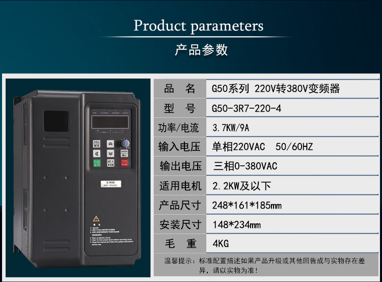 • 220轉(zhuǎn)380變頻器,單相220V輸入轉(zhuǎn)三相380V輸出變頻器